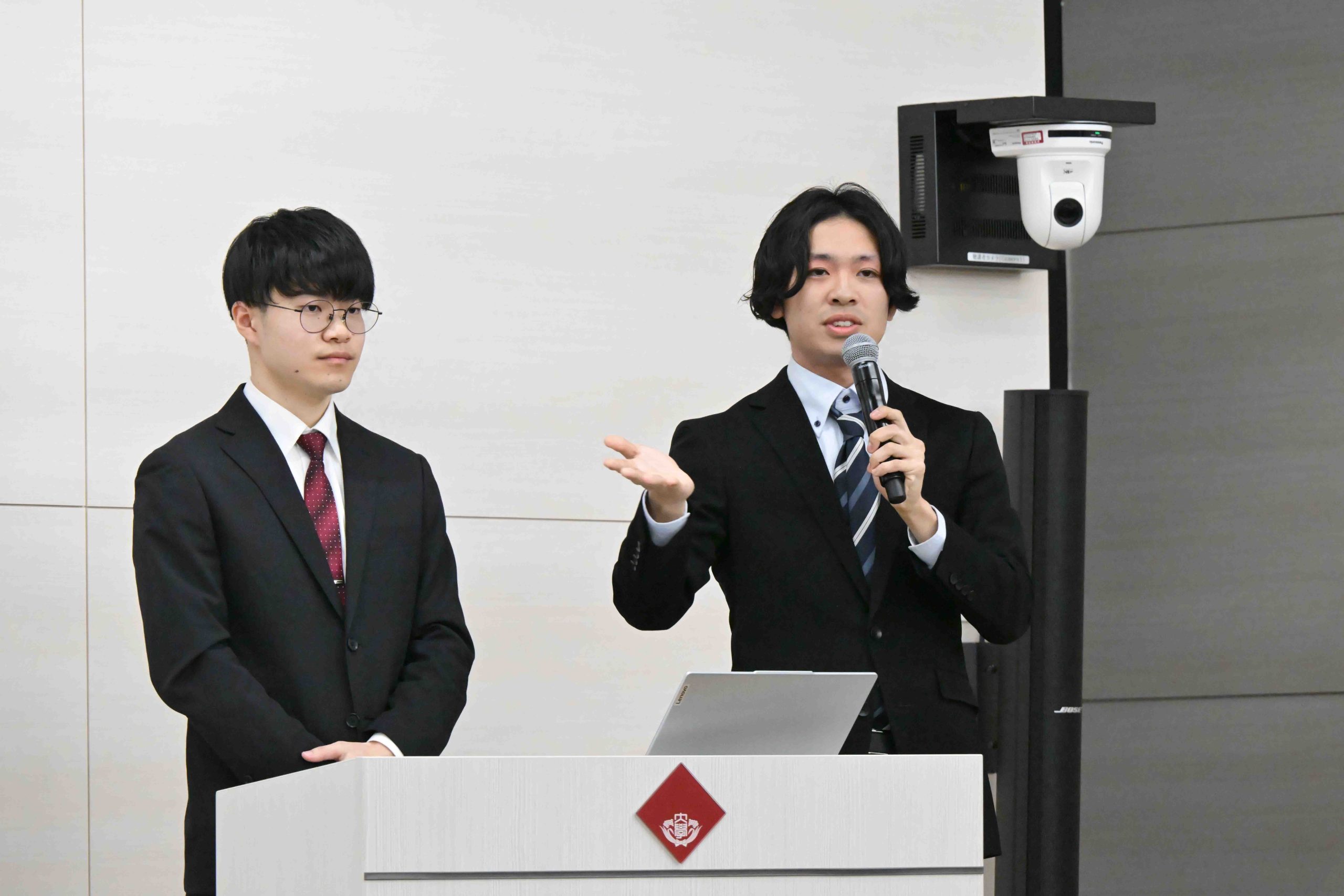 ボードゲーム『バランスデンキ』のアイデアを発表した明治大学のチーム「HARVEST」