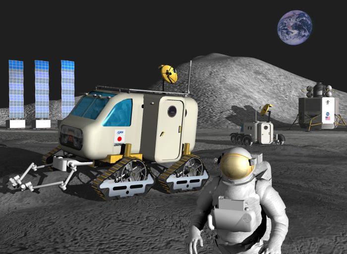 JAXAによる月の本格的な利用想像図。ロケットや人工衛星分野への民間参入により、JAXAはより高度な宇宙利用の研究に集中することが可能となる