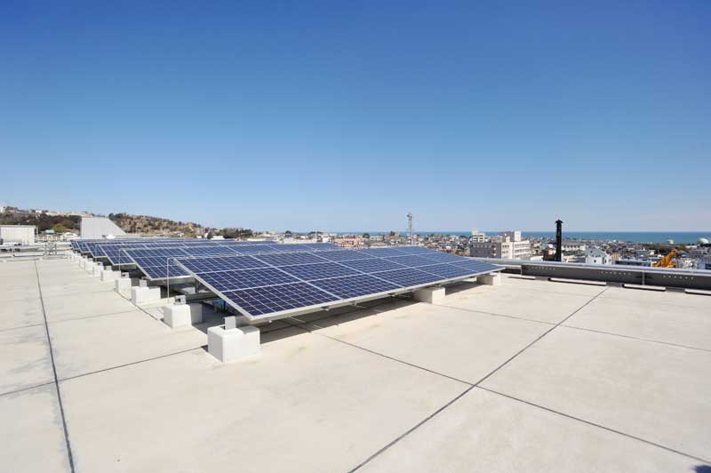 市街を一望できる屋上には、庁舎のおよそ1フロア分の照明の電力をまかなえる20kWの太陽光発電設備を設置する。ほか、各フロアの照明にはLEDを採用するなど省エネルギーにも配慮されている
