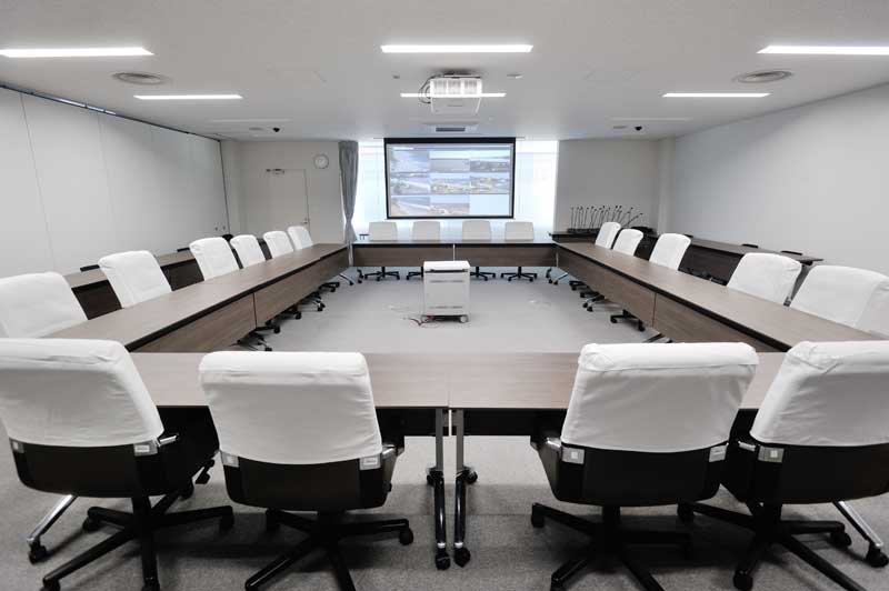 新庁舎は4階に防災対策本部を設置。市内8カ所の海岸線のライブ映像が確認できる。ほか、合計1000kWの自家発電設備(後述)やトイレの洗浄水として利用できる井戸水、免震構造など、災害に強い建物に生まれ変わった