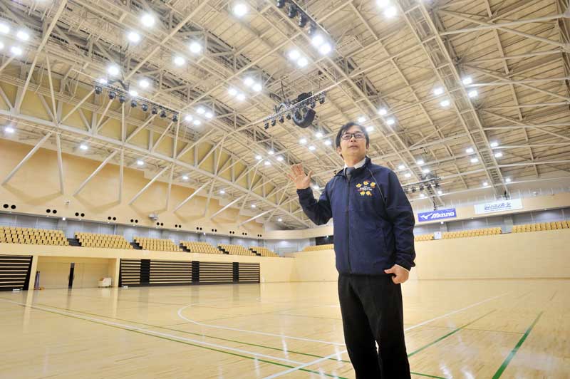 「震災で旧体育館は、支えとなっていた柱18本のうち11本が致命的なダメージを受け、診断の結果、耐震力がないと分かり使用禁止となったのです。新しい体育館の建設にあたっては、市民の方からどんな体育館にすれば良いか、広く意見を聞きました。元々、県北で一番大きな施設でしたので、“いろいろな競技ができるようにしてほしい”“大きなスポーツ大会を見たい”という意見がありました」