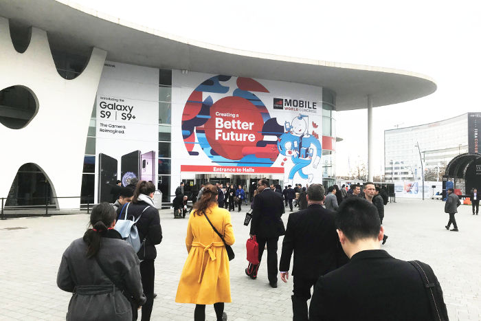 「Mobile World Congress 2018」が行われたスペイン・バルセロナにある会場フィラ・グランヴィア。連日世界中から訪れる人々でごった返していた