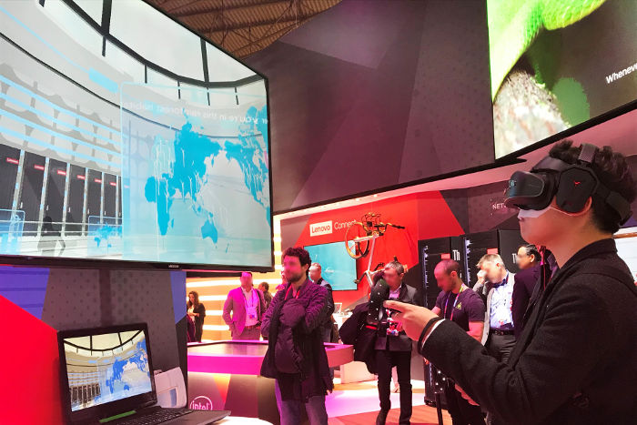 中国PCメーカー・Lenovoのブースに展示されたVRコンテンツ。会場では、各社各様のVR・AR・MRコンテンツの展示が行われた
