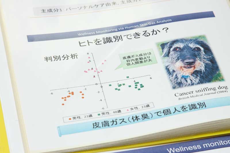 「犬はにおいで飼い主を嗅ぎ分けますよね。それほどの情報がにおいにはあるということです。われわれはこれまで延べ300人ほどの皮膚ガスを調べてきました。そのデータを解析することで、現状でも性別は分かりますし、年齢もある程度は分かるレベルに達しています。実現可能な技術だと思っています」