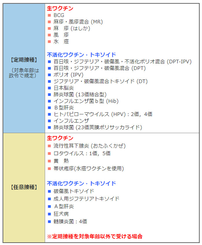 日本で接種できるワクチンの種類一覧(2018年9月1日現在)