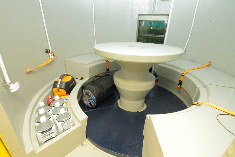椅子の下は収納庫となっている。水や非常食、ライフベストなどの格納が可能だ