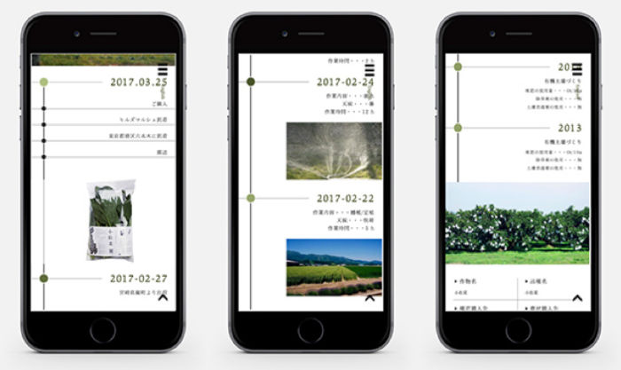QRコードから専用ページに入ると、その野菜が育てられた農地や育成状況、いつパッケージ、出荷されたのかなどが閲覧できた