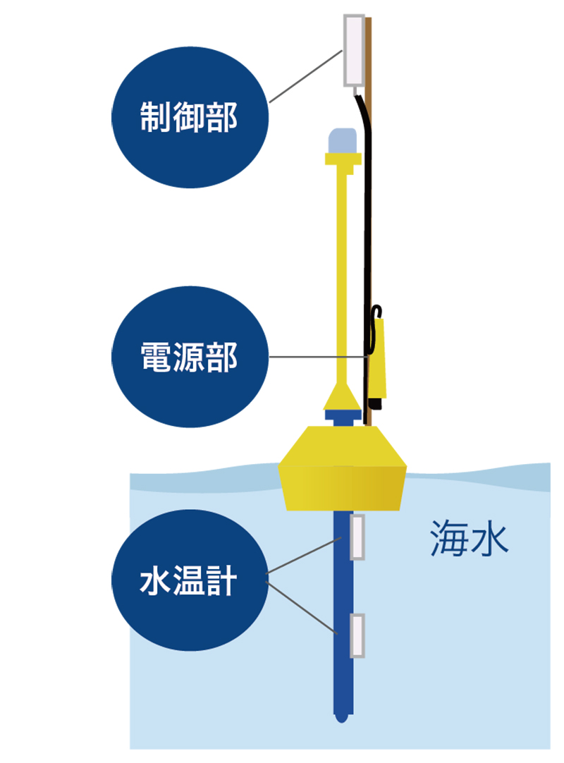 全国に40基が浮かぶICTブイ。海上保安庁などにブイを納品するセナーアンドバーンズ社製で、水温計と導電率計を標準装備し、水温と塩分濃度が計測できる。さらにセンサを追加することで、ニーズに合わせたデータ収集が可能だ