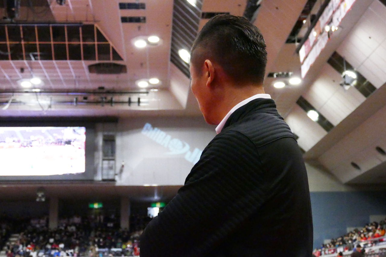 B.LEAGUE CHAMPIONSHIP 2017-18の会場となったホーム、船橋アリーナで試合開始を待つ島田氏