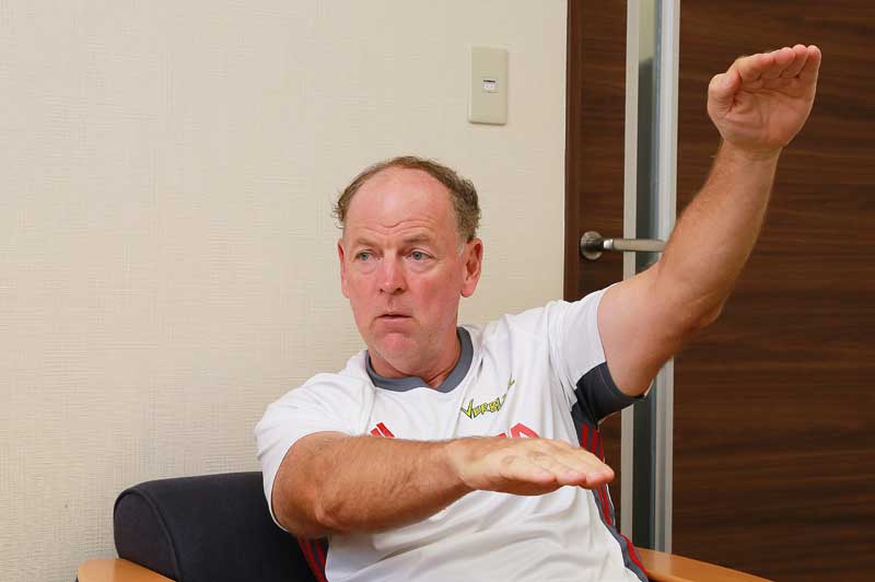 ときにジェスチャーを交えつつ熱く語るホワイト氏。分かりやすく確実に伝えるということは、チームを指導する上でもキーポイントになる