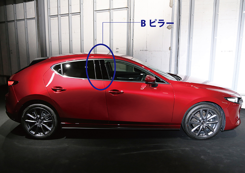 MAZDA3は連続する滑らかな面で構成されるボディーを全て鉄で形成。鉄はエネルギーを伝達するが、減衰しにくいという特性を持ち合わせるため、いかにエネルギーを減衰させるかが課題となった