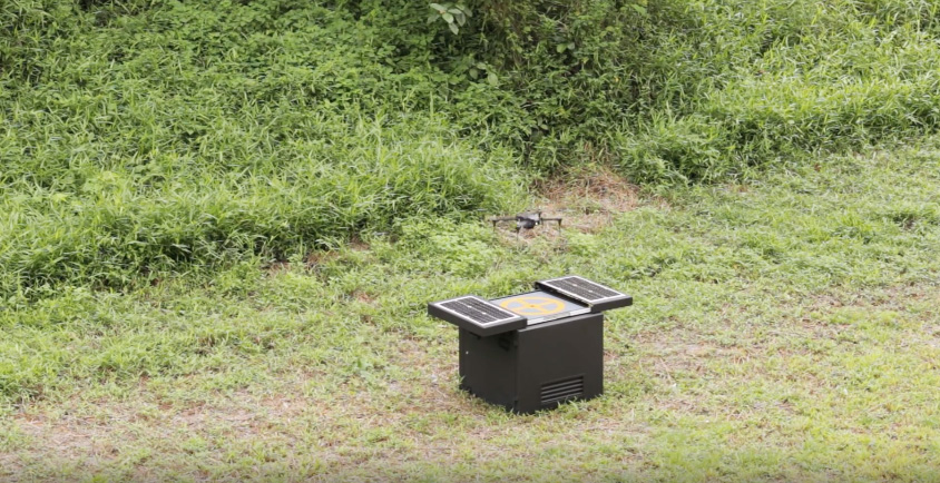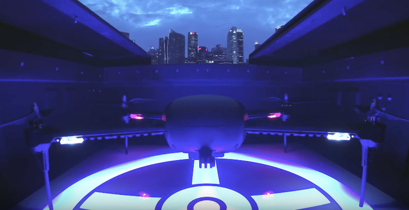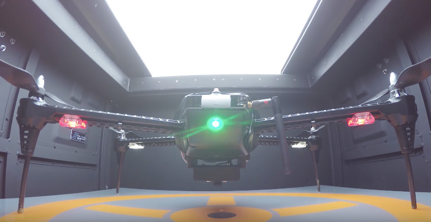 基地に格納されたドローンが飛び立つ瞬間