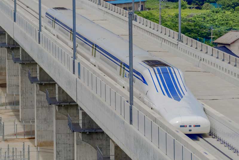 既に上海で実用化されている常電導リニア(一般的な電磁石による吸引力で浮上するリニアモーターカー)と違い、世界初の超電導リニア(強力な超電導電磁石によって10cmほどの大きな浮上高を得られるリニアモーターカー)となる日本の技術。安全性や速度は折り紙付きだが、その高い建設コストから他国で導入されるような動きはない。