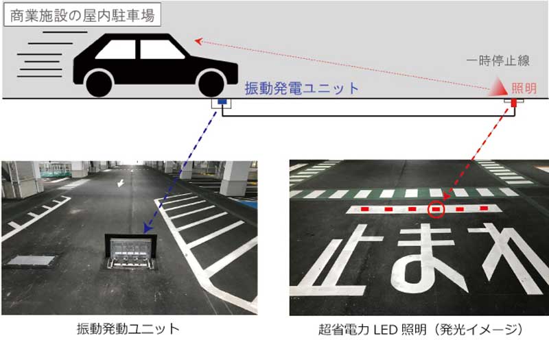 今回、この振動発電ユニットが稼働したのは、新しくオープンした商業施設の駐車場4カ所。