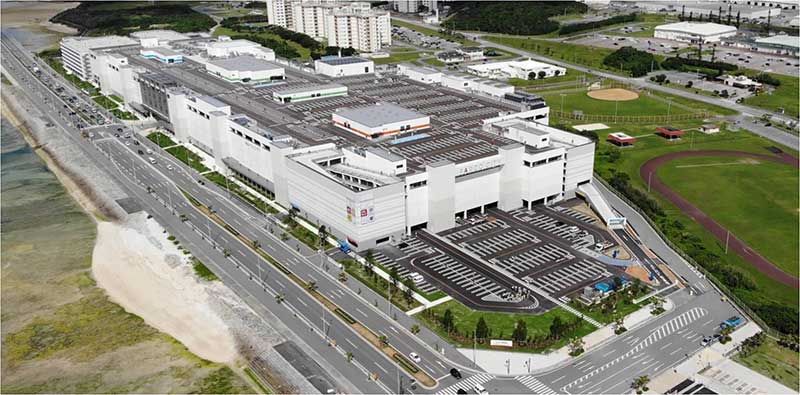振動発電ユニットが導入された「サンエー浦添西海岸 PARCO CITY」。約4000台もの駐車スペースがあり、駐車場事故減少に期待がかかる