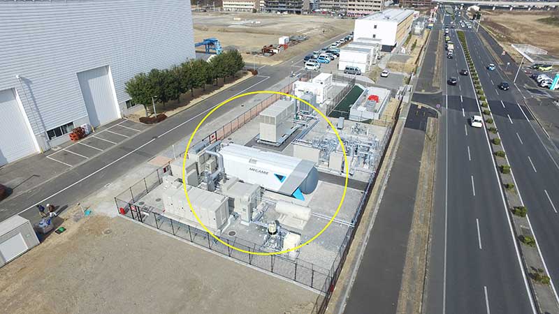 三菱日立パワーシステムズにとって、MEGAMIEを納入するのは東京・丸の内の三菱地所株式会社(丸の内ビルディング)に続く2例目。今回のシステムは長さ11.4×幅3.2×高さ3.3(各m)からなり、重量は約33t。出力は210kWで、一般家庭の250世帯分に相当する。