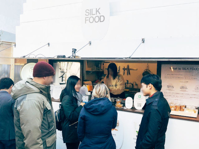 表参道・COMMUNEで営業している「シルクフードラボ」。テイクアウトほか、オープンスペースで食べることも