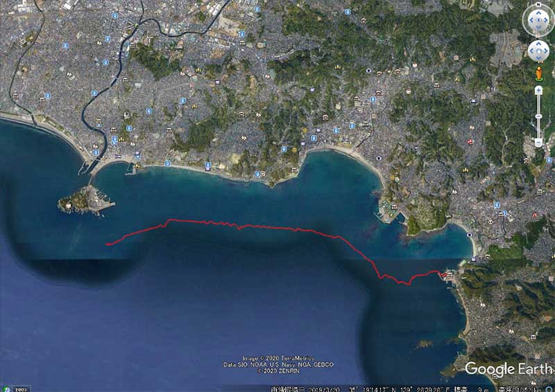 1m級クラスの帆船が葉山港から江の島間を自動航行した際の軌跡