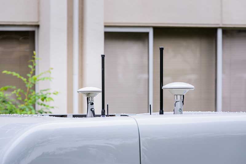 車体上部のアンテナ。QZSSは愛称「みちびき」とも呼ばれ、GPSと互換性を持つ