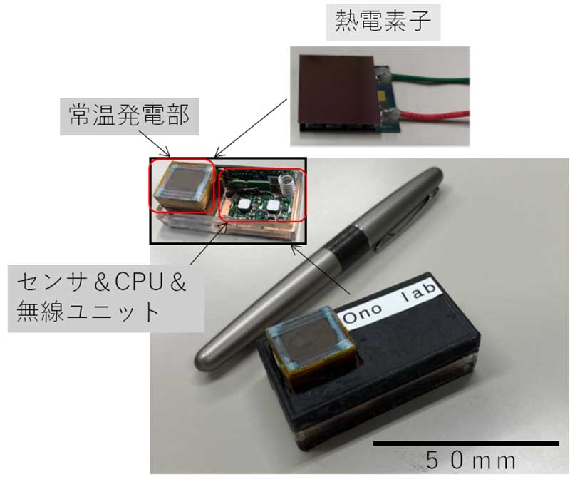 ⾵⼒や太陽光など、室内や暗所では得られない再⽣可能エネルギーの代替として期待される常温発電デバイス。