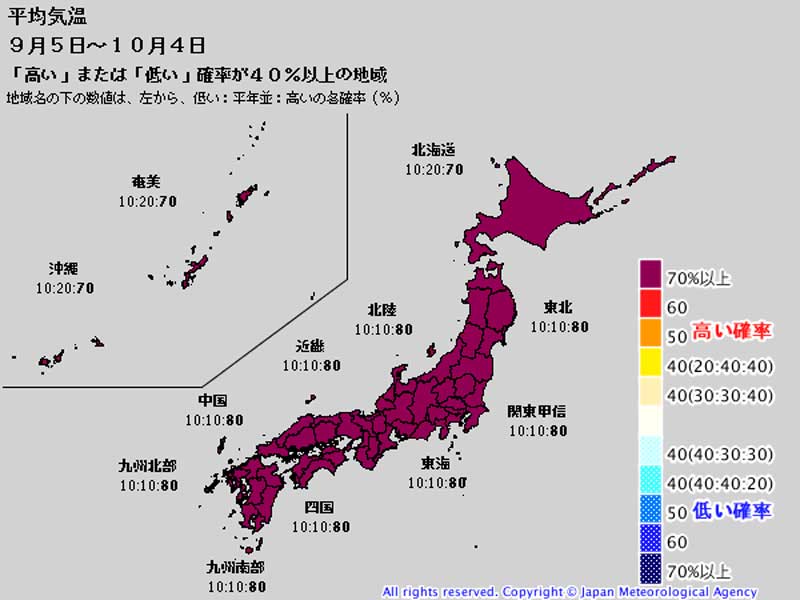 しかし、今月上旬に気象庁が発表した1カ月予報によれば、例年に比べて平均気温が高くなる確率は70%以上とされ、全国的に暑くなることが予想されている。