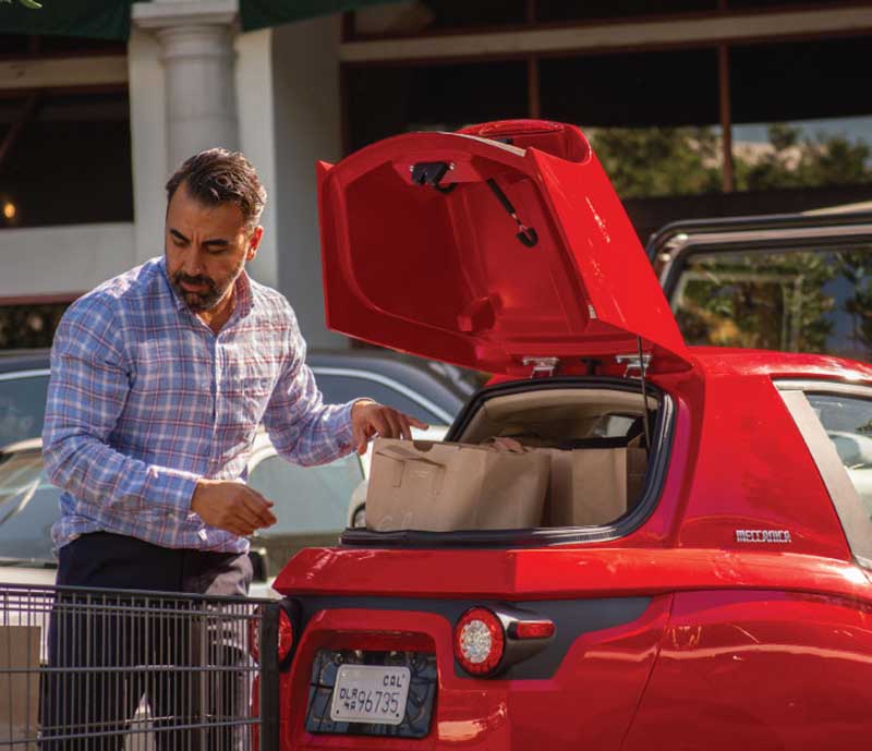 また、コンパクト設計ながら機能面も充実。後方トランクの容量は約140リットルで、日常の買い物であれば十分すぎるサイズだ。