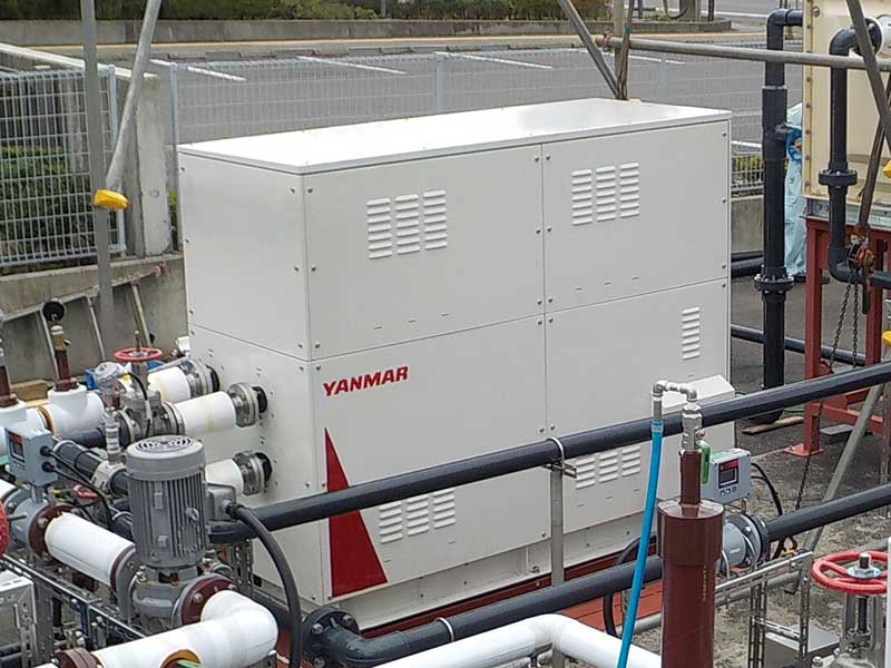 今回、諏訪湖畔の湖岸通りにある温泉源湯・あやめ源湯の源泉に設置されたのは、大阪市に本社を構えるヤンマーエネルギーシステム株式会社(以下、YES)が開発した小型ORC発電システム。