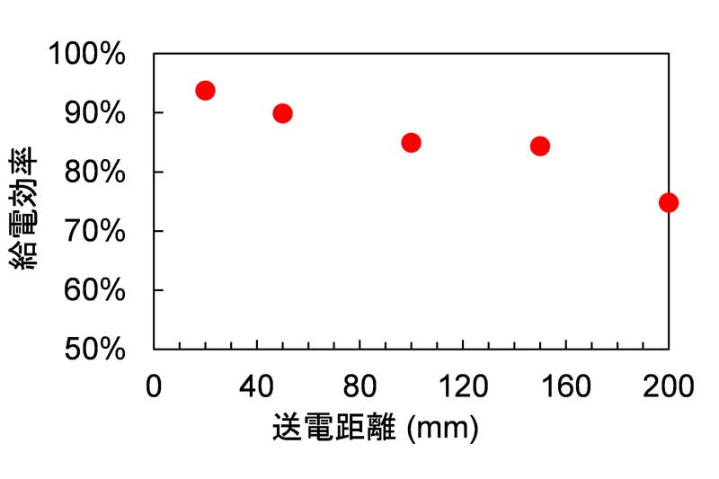 実験では、送受電器の距離が2cmで94.5%、15cmでも85%以上の給電効率を達成。