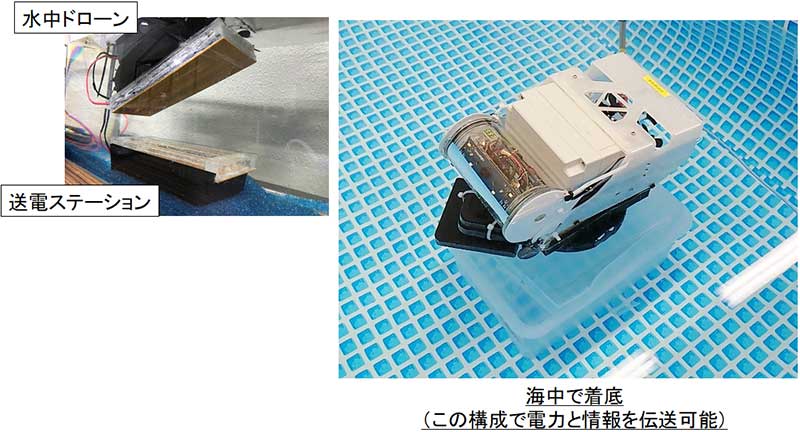 実際、研究チームが海中での使用を想定した給電ステーションを水槽内に試作して実験を行った結果、ドローンに取り付けた状態での給電・通信にも成功。