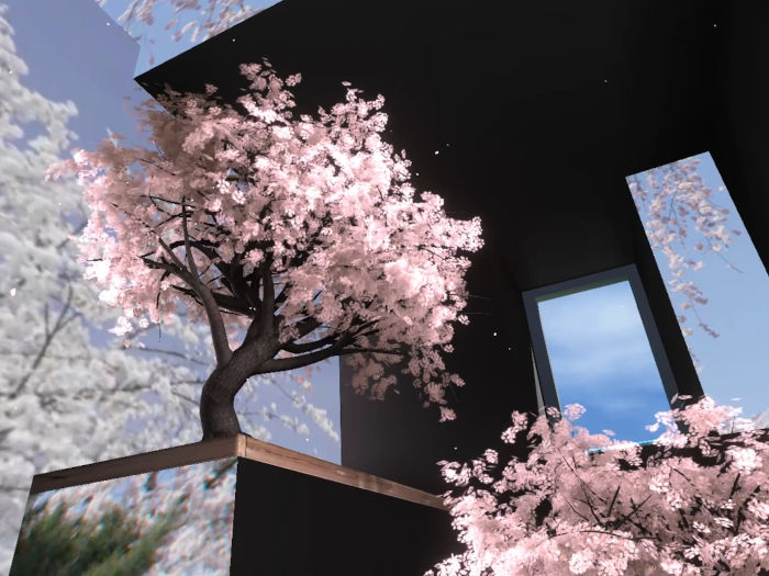 VR空間に再現された弘前城の桜。JRグループが2021年4月から9月に実施する「東北デスティネーションキャンペーン」の一環として、今回は青森県がテーマに選ばれた