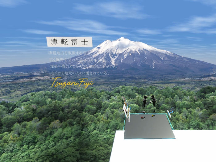 津軽富士と呼ばれる岩木山。VRゴーグルの先に広大な風景が広がる