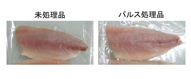 パルス処理をしたアジの魚身は、未処理の魚身と比べても見た目に大きな違いはなく、品質が保たれていることが分かる