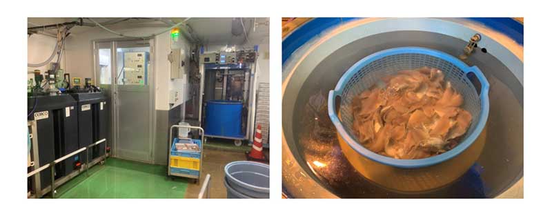 現在はジャパン・シーフーズ工場で使用するアニサキス殺虫装置のプロトタイプ機を作製・設置した段階で、今秋にも実際に処理した生食用刺身のサンプル出荷を予定しているという。