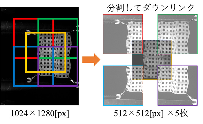 撮影領域を5分割して高解像度のまま複数回に分けて送信する「5領域分割撮影モード」の画像