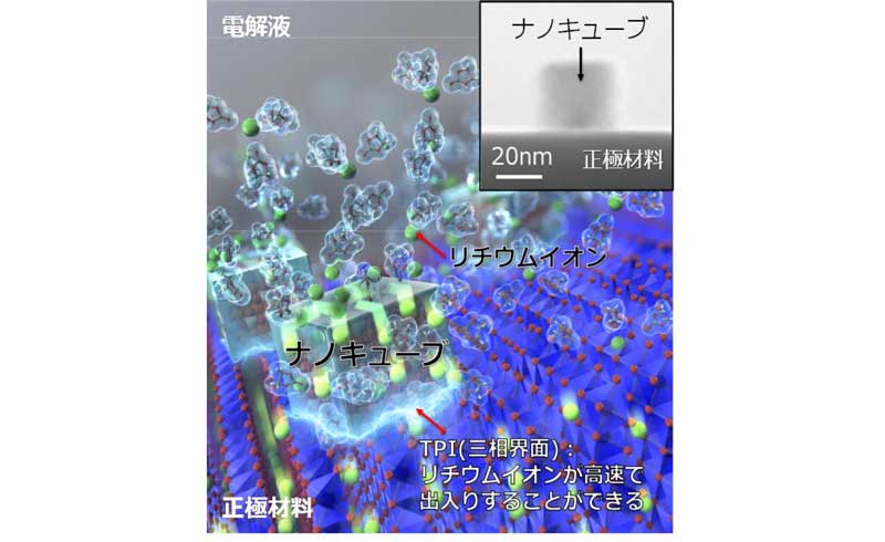 ナノサイズの立方体ブロックで充放電時間を大幅に短縮
