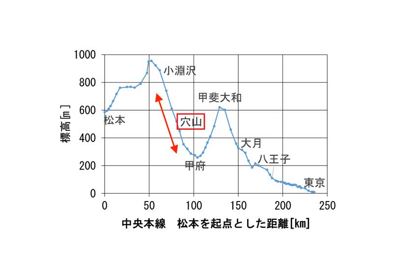 「鉄道用超電導フライホイール蓄電システム」は勾配を走行する列車のエネルギーを活用することから、実証試験の場として中央本線穴山駅に隣接する穴山変電所が選ばれた