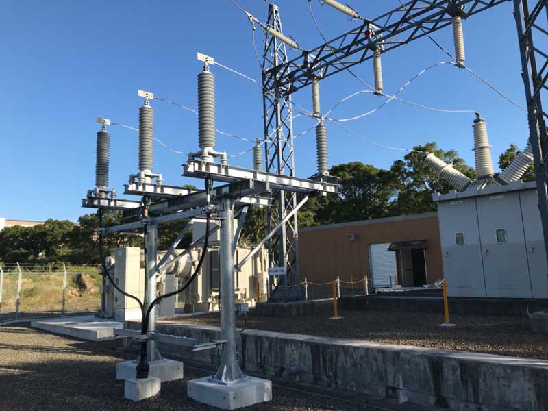 竣工した系統連系用特高変電所の引込終端接続部