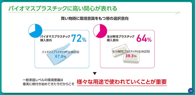 また、バイオマスプラスチックの普及には、高くなるコストを消費者に受け入れてもらえるかといったが課題もある。
