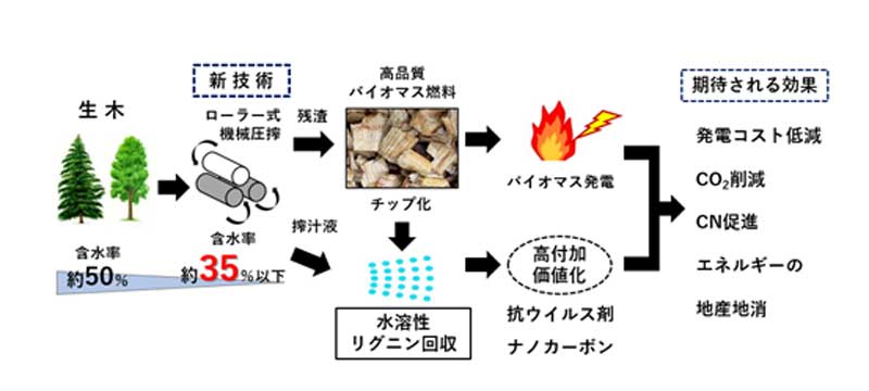 水分含有量を減らして効率よく発電! 岡山大学がローラーで“木を搾る技術”を開発