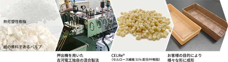 バイオマス材由来のセルロース繊維で、リサイクルにおける粉砕・成形を繰り返しても強度低下が少なく、低コストで製造可能なセルロース繊維強化樹脂「CELRe(R)(セルレ)」を古河電気工業株式会社が開発した。サステナブルな社会実現におけるプラスチック製品の資源循環促進が期待されるこの樹脂の開発背景を解説する。
