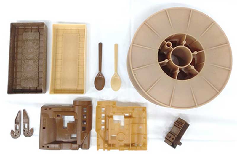 「CELRe(R)」を射出成形した製品の一例。樹脂のセルロース繊維が高濃度になると、セルロース特有の色合いが成形体に現れる。着色も可能