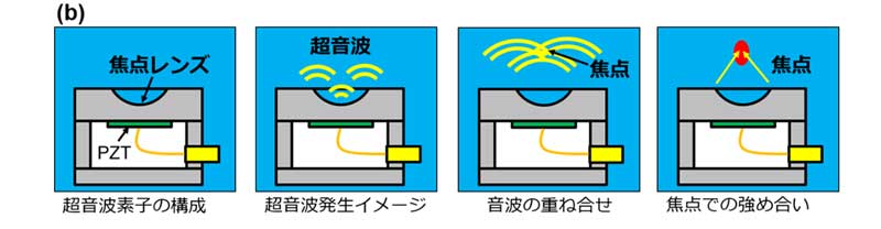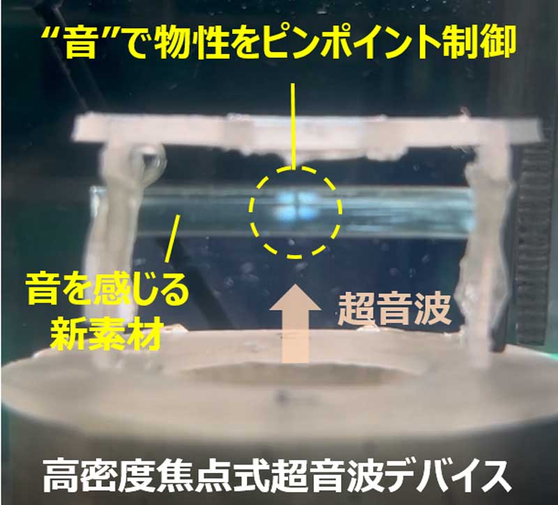 この課題を解決するため、研究グループは音波で伝播される振動を材料の内部に作用させる外部刺激として「音」、とりわけ医療にも用いられる高密度焦点式超音波「HIFU」※3に着目。