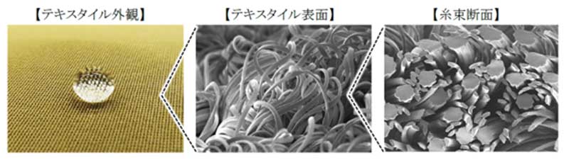 バイオミメティクスを応用し、繊維そのものが水をはじく構造に