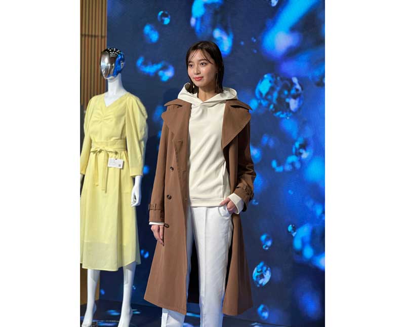 同社では、2025年春夏シーズンからアパレル素材としてメンズ・レディース向けに「DEWEIGHTTM」を用いたアウターやボトムスのアイテム展開を予定し、2025年度には20万m、2027年度には50万mの販売を目指す。