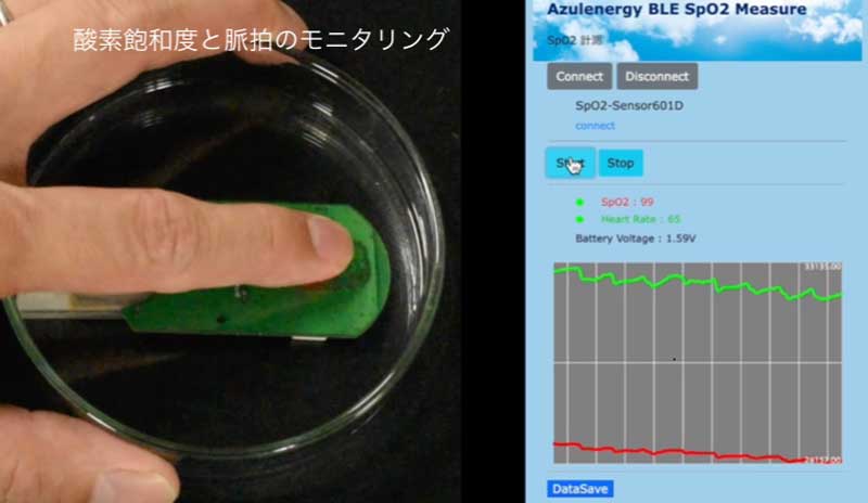 SpO2計の駆動の実証実験では、酸素飽和度・脈拍のリモートモニタリングに成功