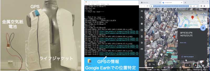 また、この金属空気紙電池は塩水をトリガーに発電することから、漁業やマリンレジャーで溺れた救助者の位置を特定するGPSセンサーを内蔵したスマートライフジャケットの電源としても期待され、こちらも実証実験が行われている。