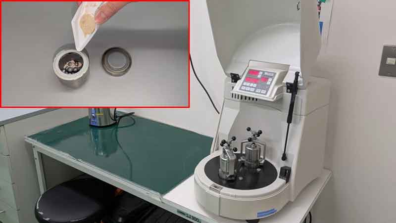 メカノケミカル処理装置。研究では結晶の一部を非晶質化し、後の化学反応を促進させた
