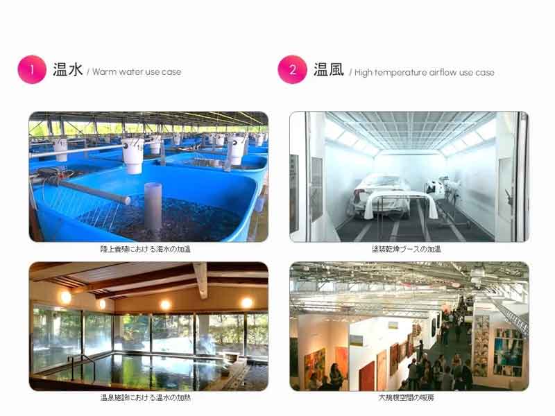 日々発電量が変動し、昼間に余剰となった再エネ電力を蓄熱、温水や温風として適時活用することを想定。また、一定温度のガスを長時間安定的に供給する機能も備え、温浴施設、陸上養殖施設、工業用乾燥炉など幅広い分野への熱供給が期待される。