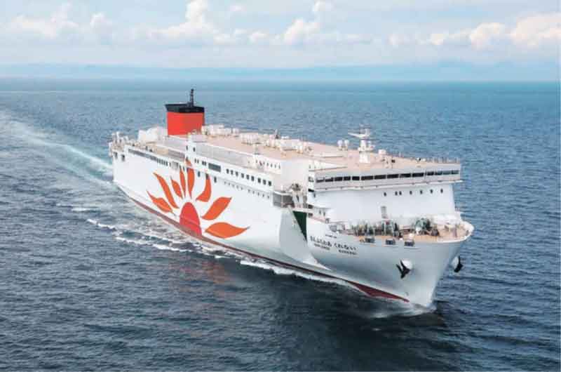 商船三井は、日本各地の主要港を結ぶフェリー「さんふらわあ」などを定期運航している。画像は2023年1月就航の日本初のLNG燃料フェリー「さんふらわあ くれない」