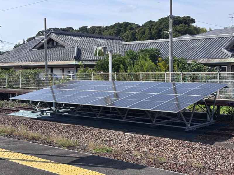 国内初! JR九州管内の駅構内、使用停止レールに太陽光発電システム設置